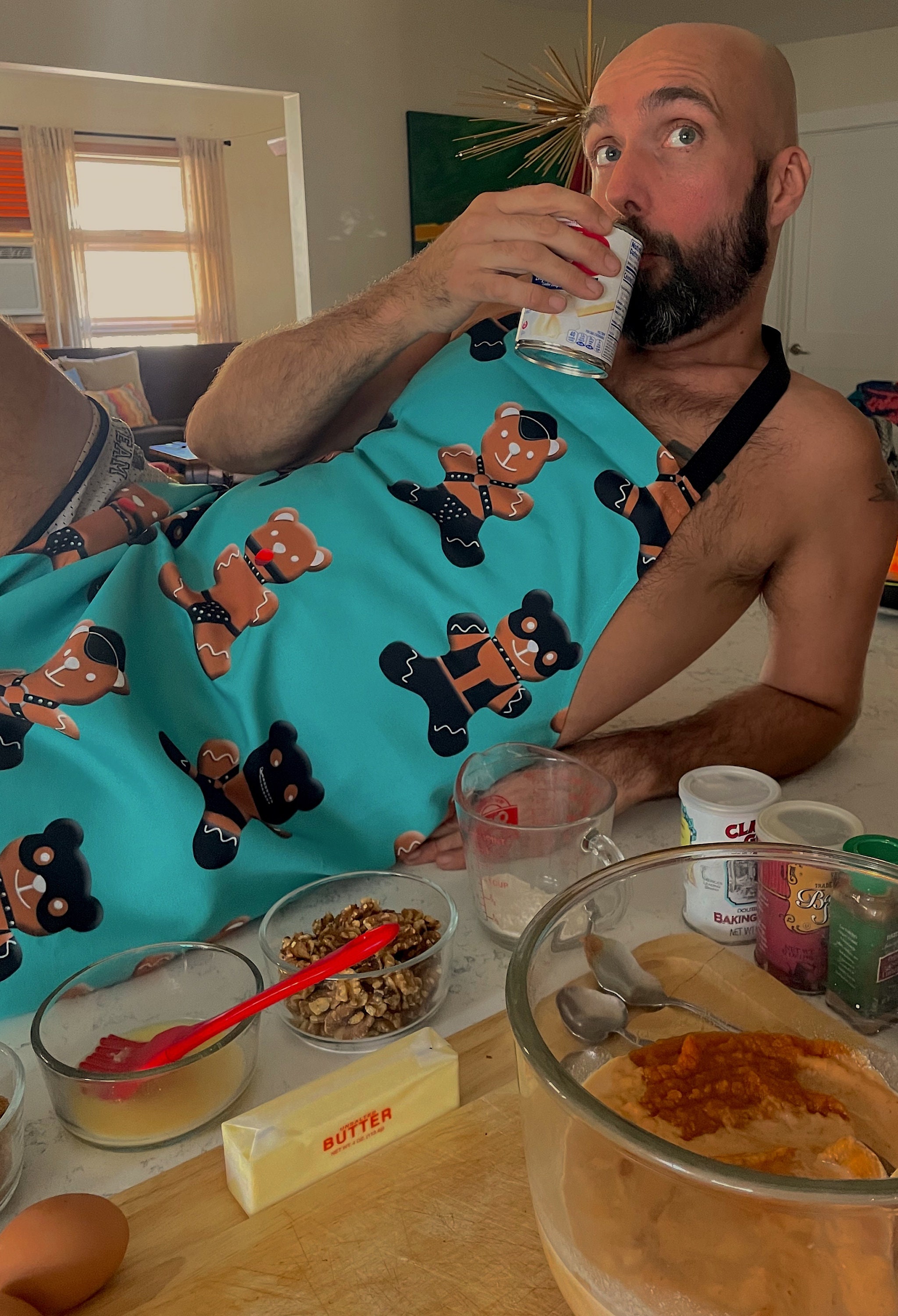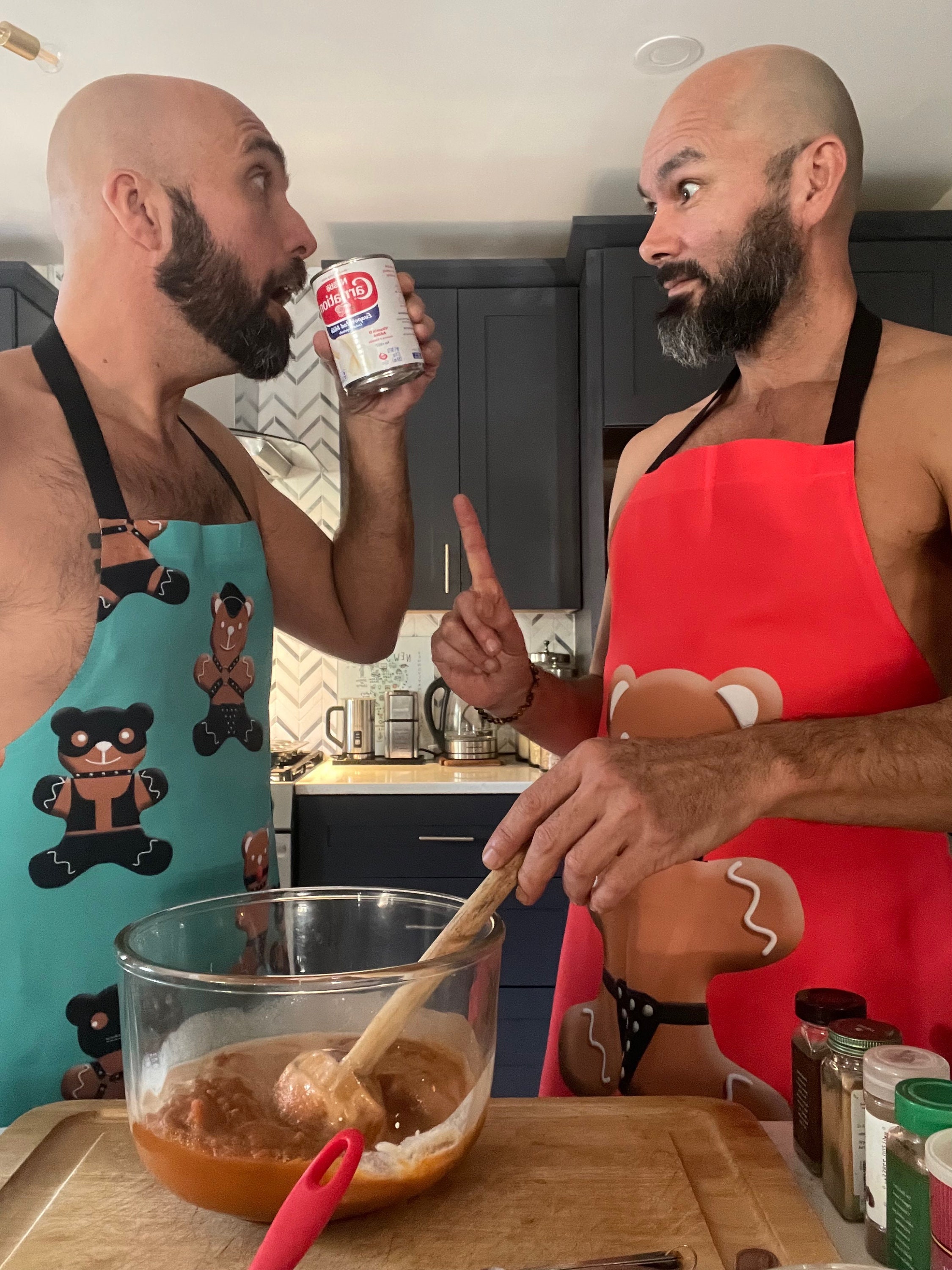 Spice up your baking time this holiday season with our GINGERBRED BEARS Gaypron. This is the perfect item to get your guests talking. You'll always look your hottest in the kitchen, at the grill or anywhere you wear it. Our aprons are also great housewarming or holiday gifts for chefs and anyone who likes to bake and spend time in the kitchen.