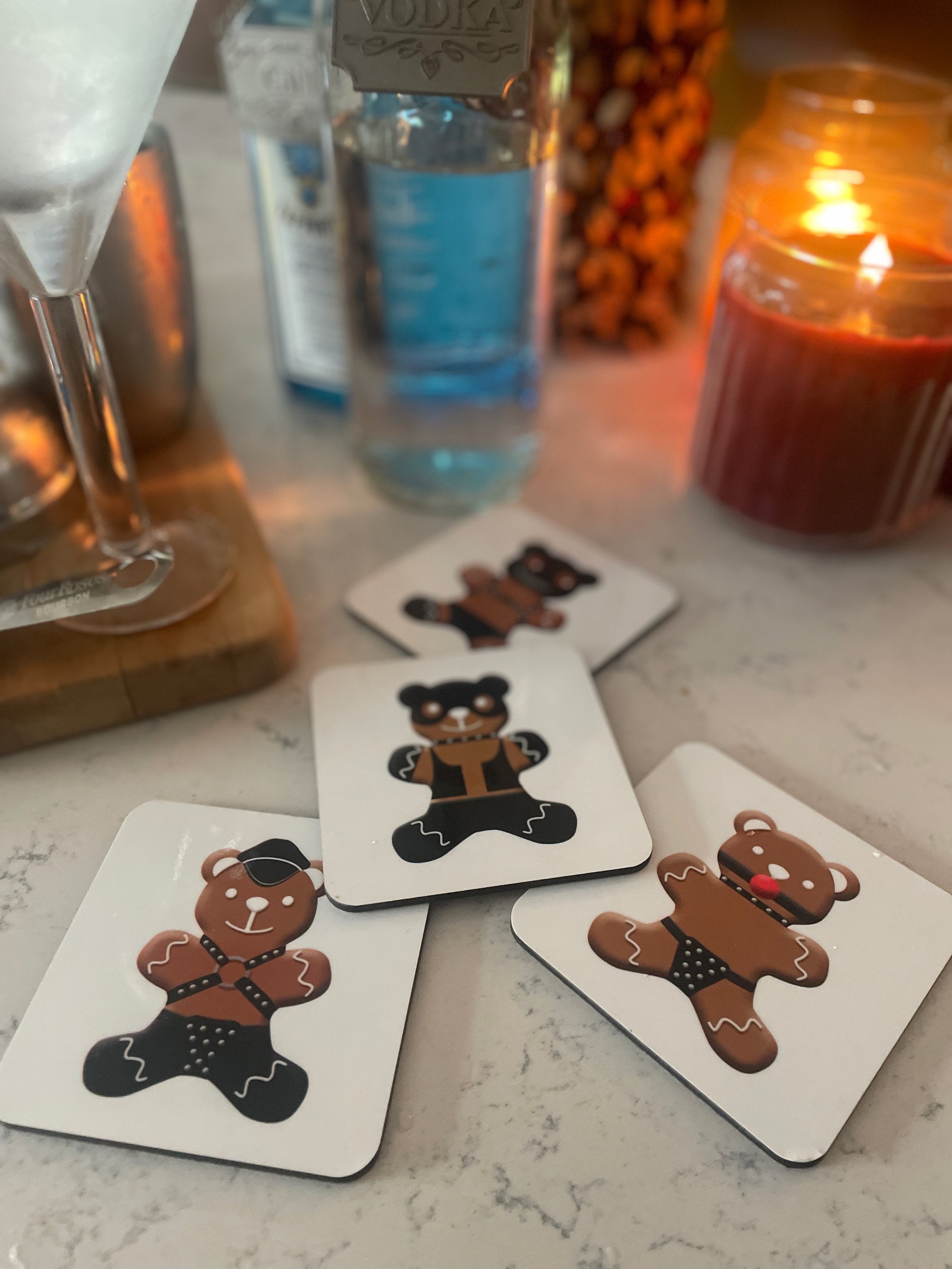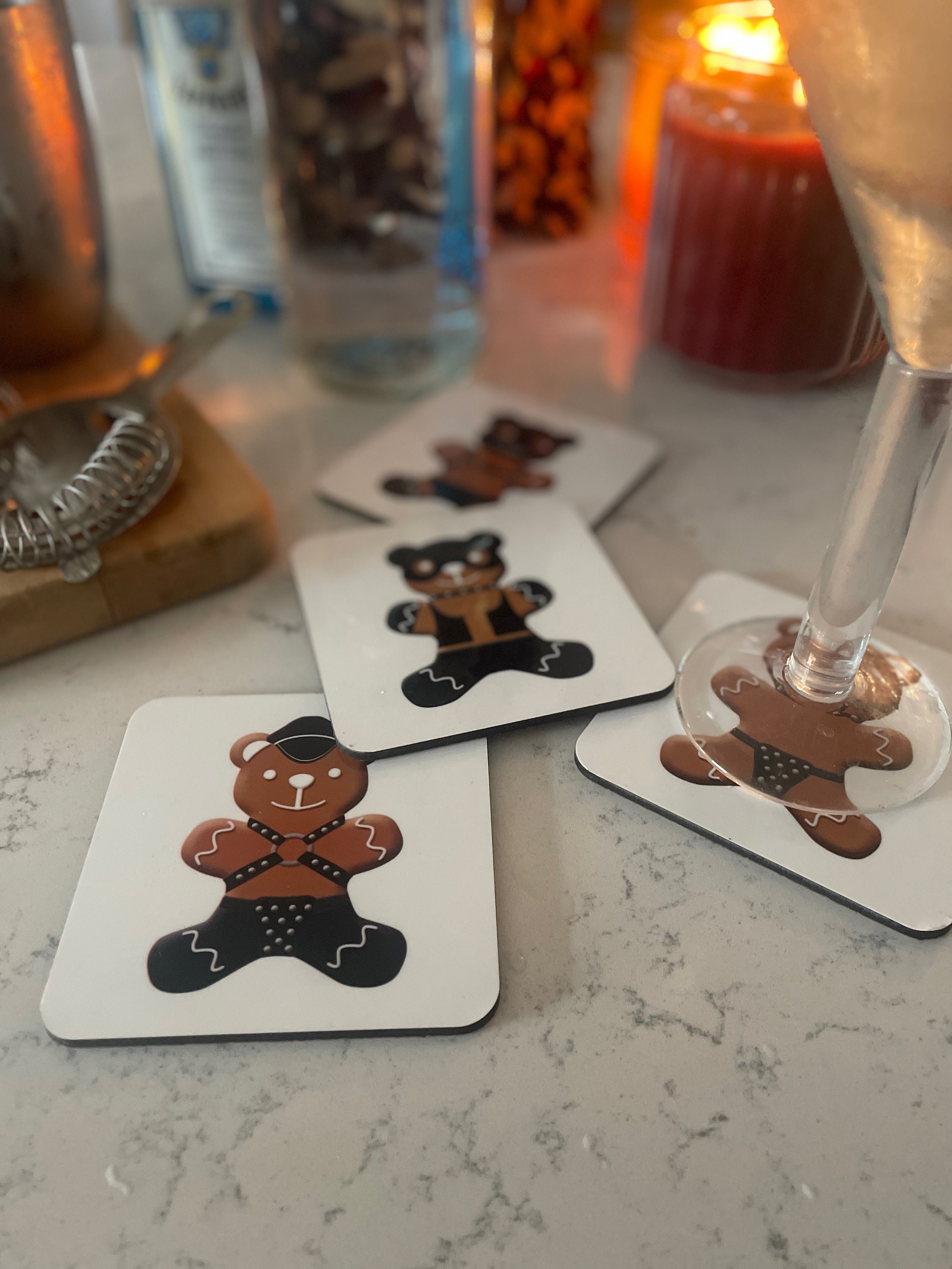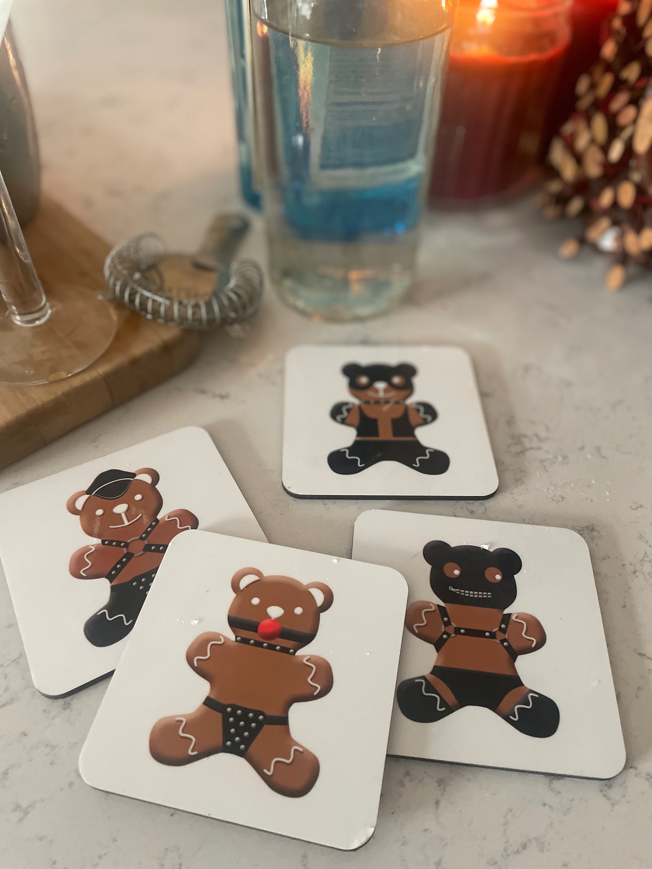 Everyone likes freshly baked gingerbread men but they like gingerbread bears even more. These sexy coasters are the perfect addition to your home for the holiday season.
