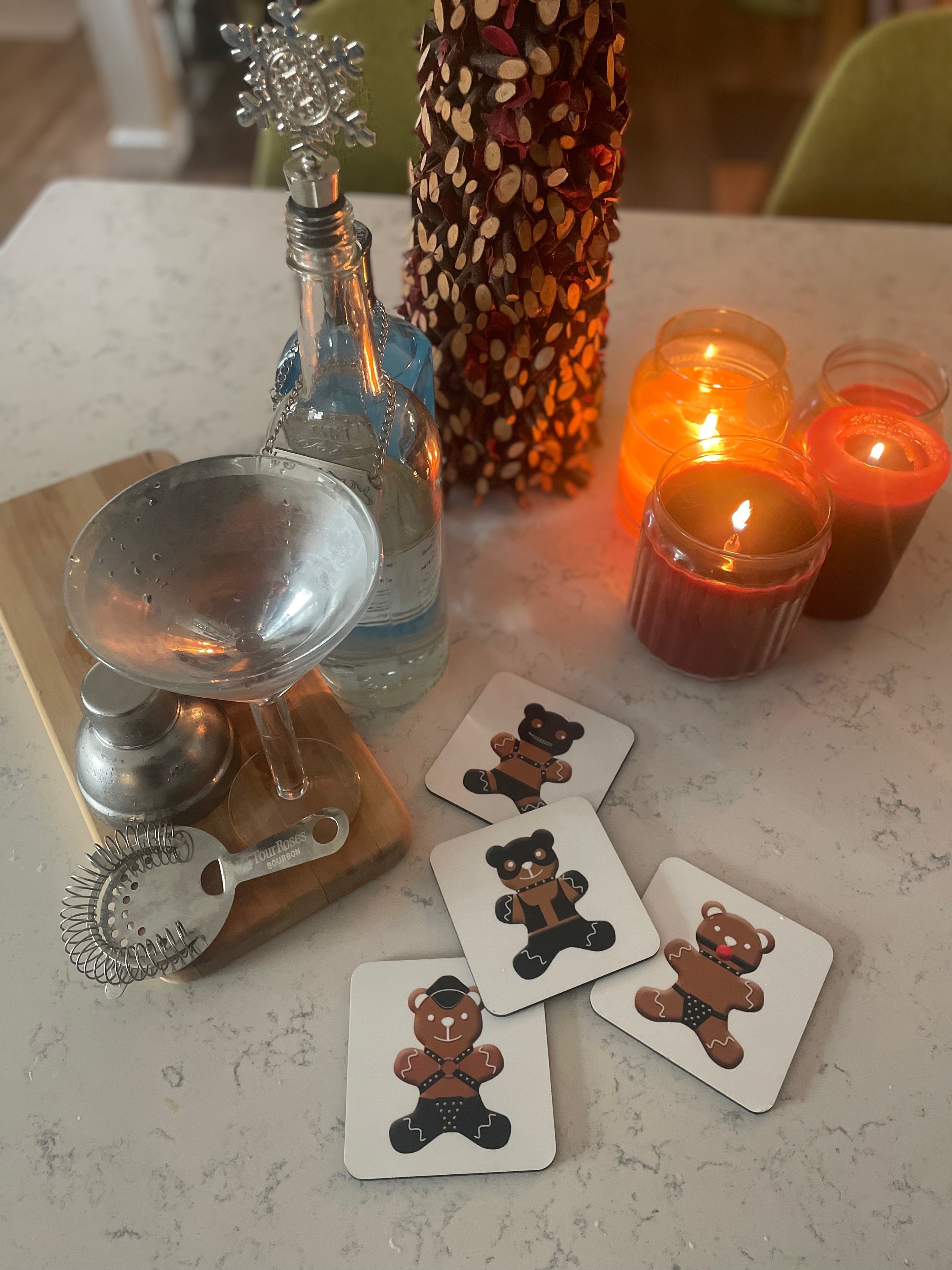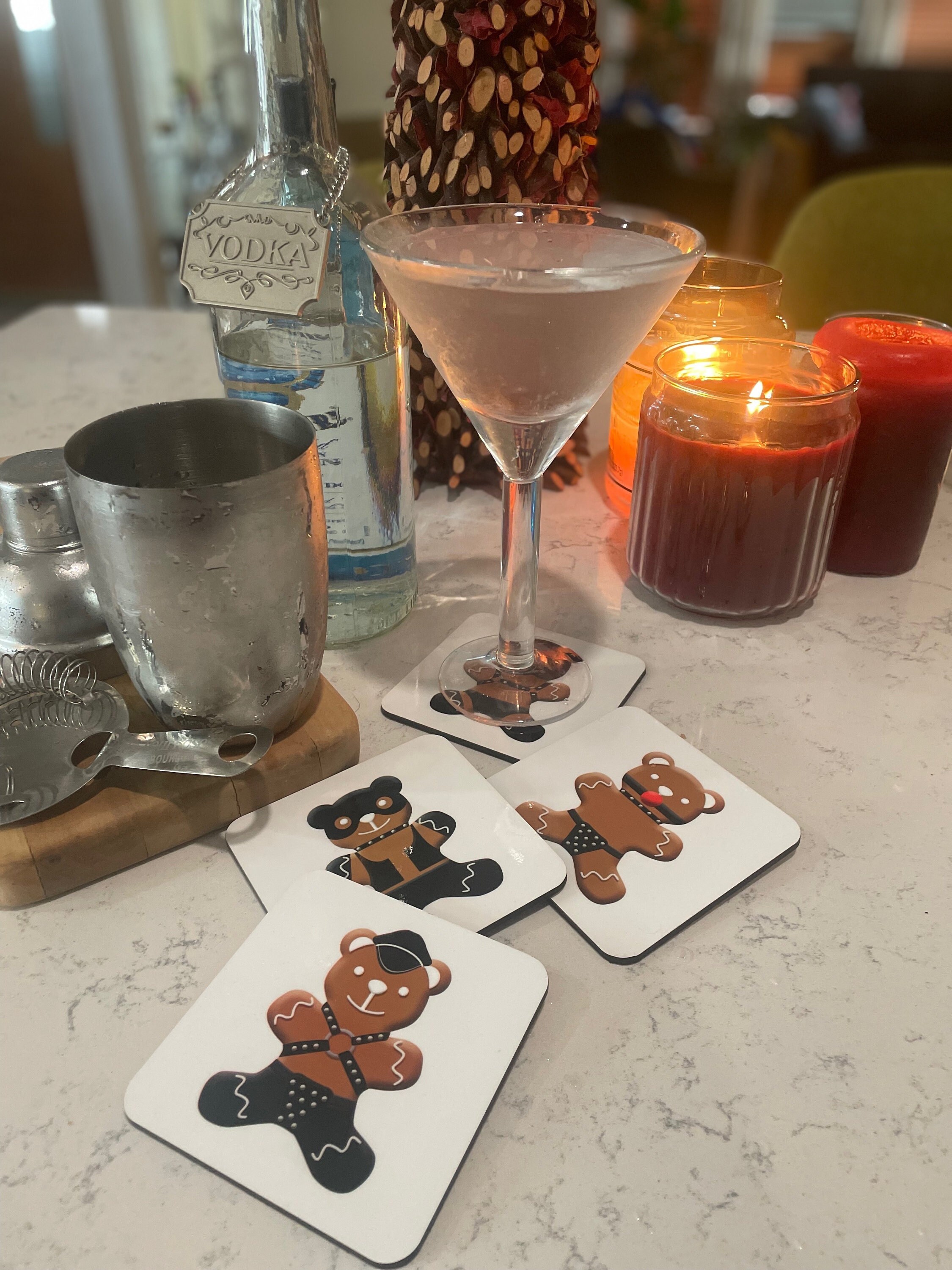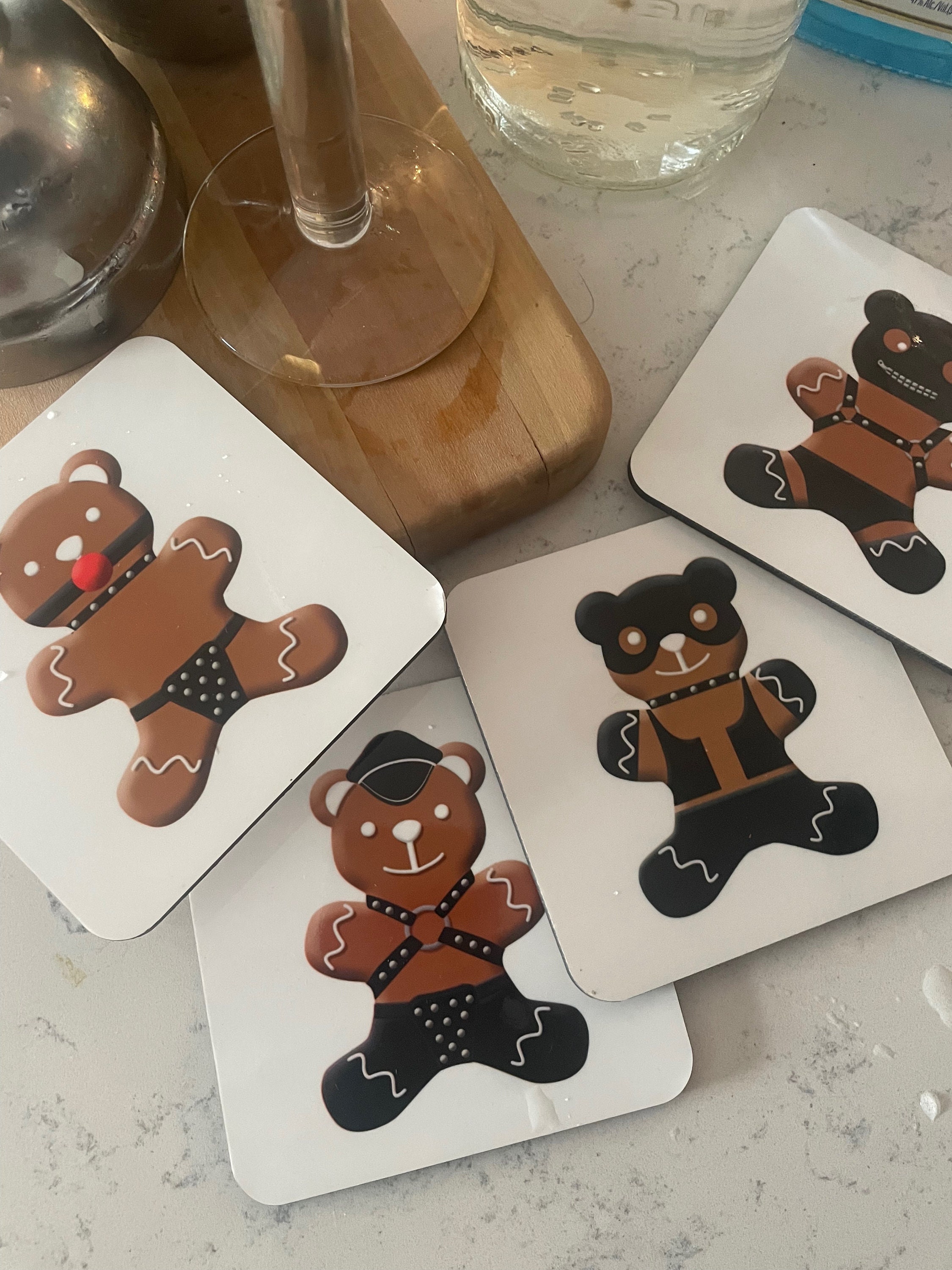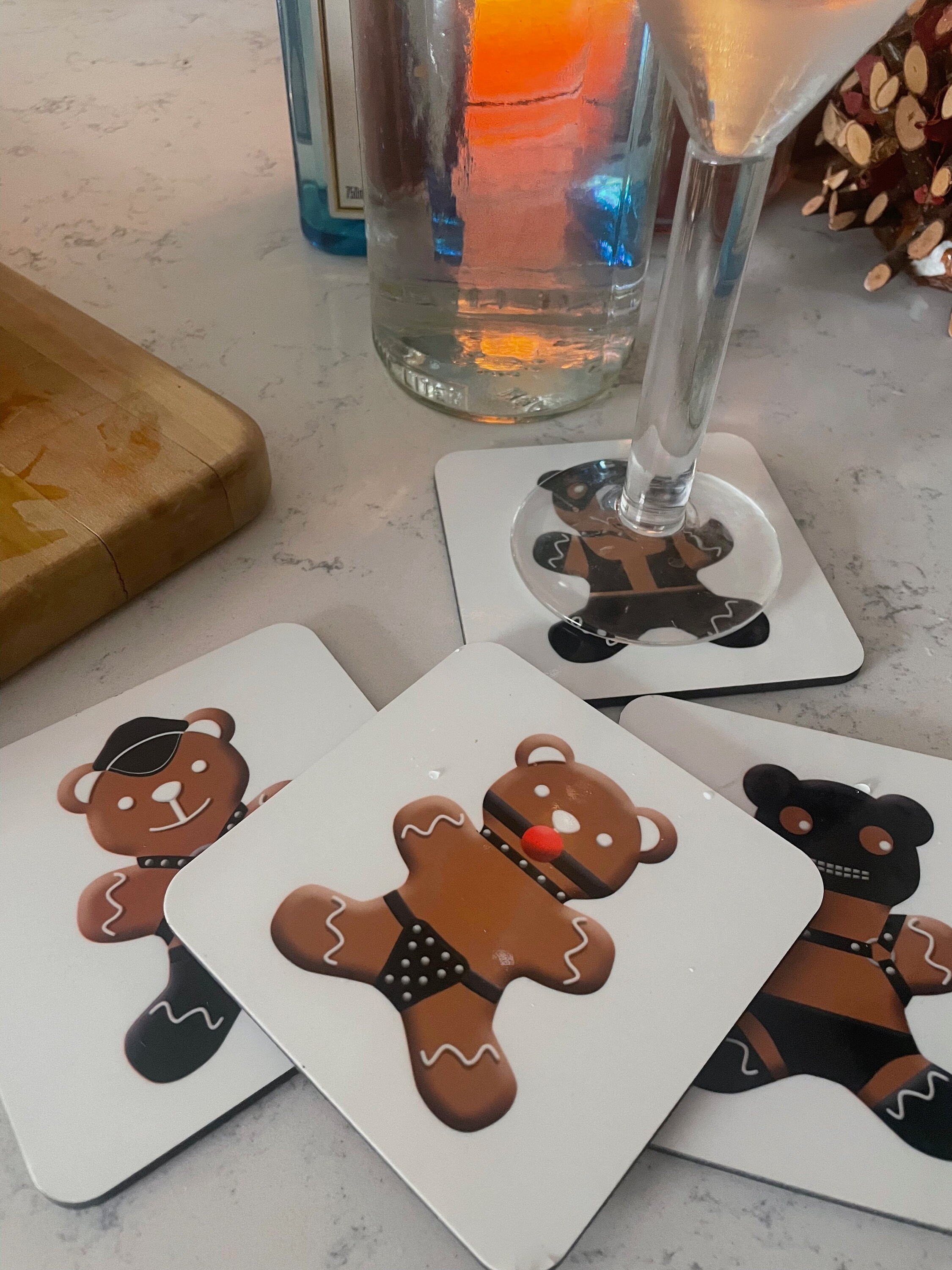 Everyone likes freshly baked gingerbread men but they like gingerbread bears even more. These sexy coasters are the perfect addition to your home for the holiday season.