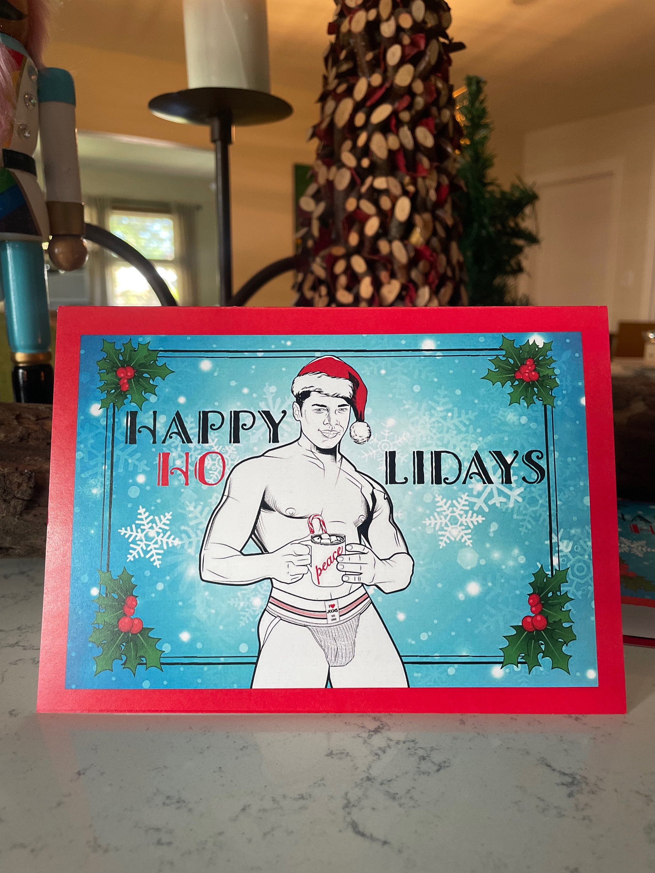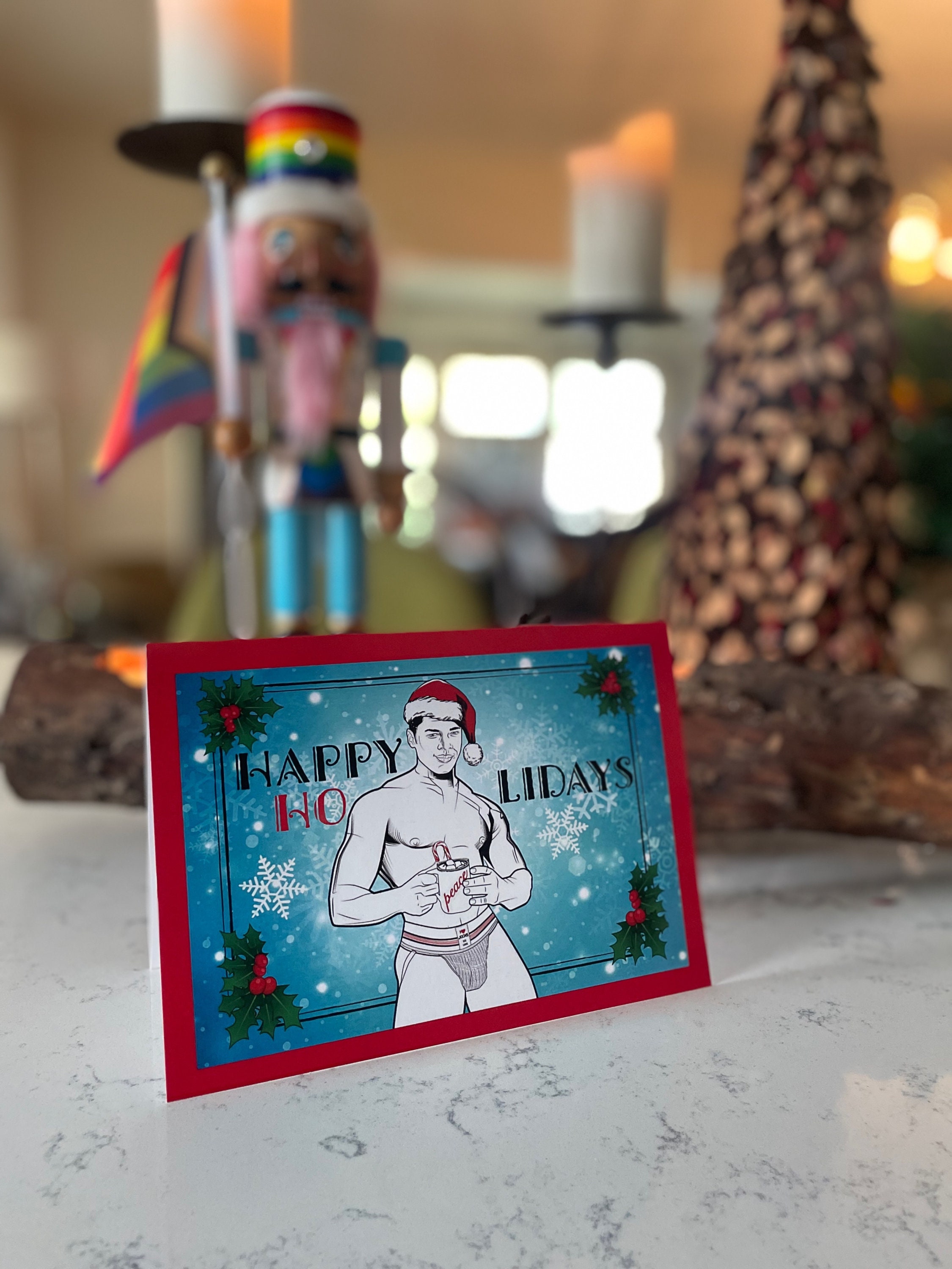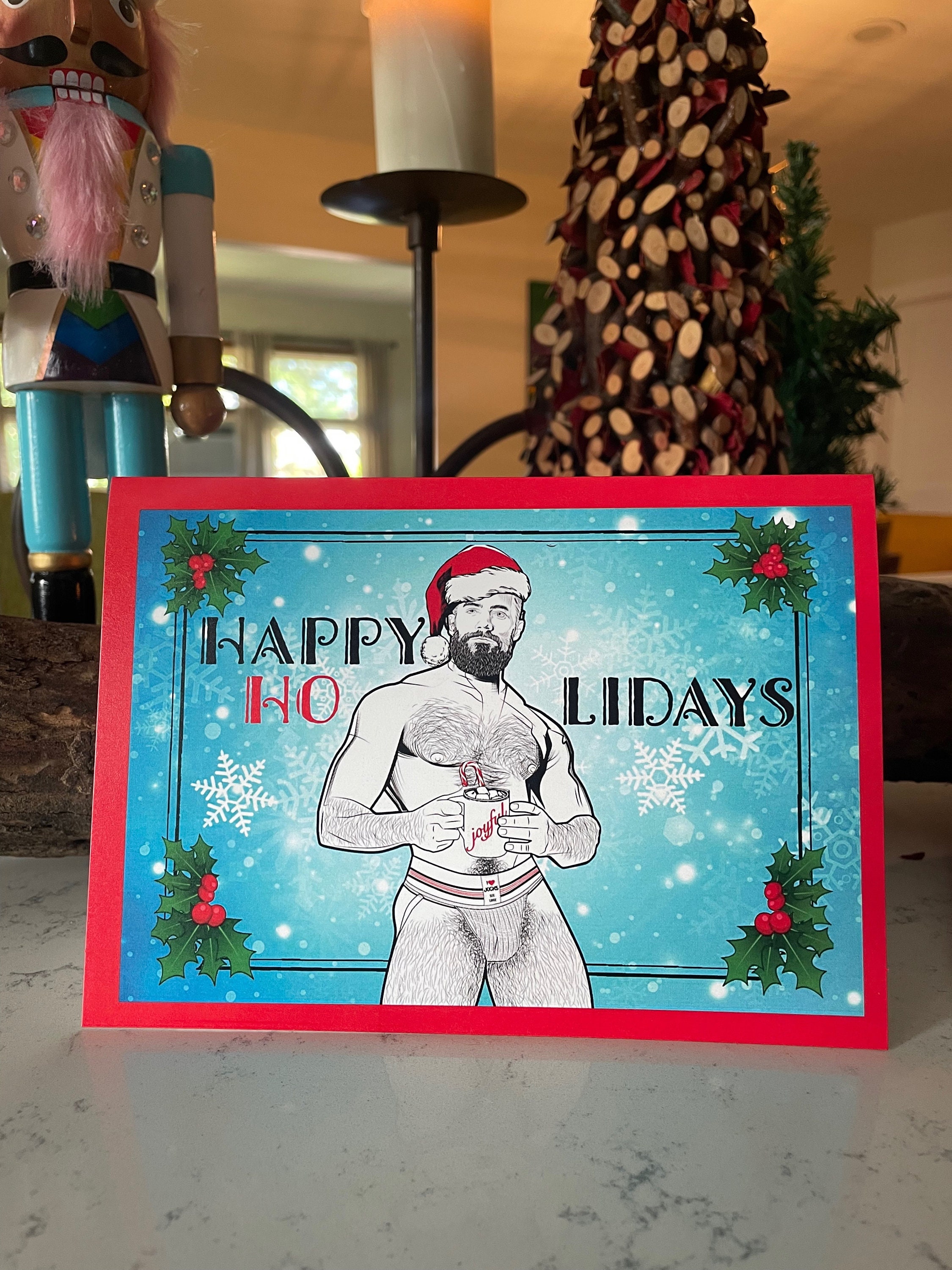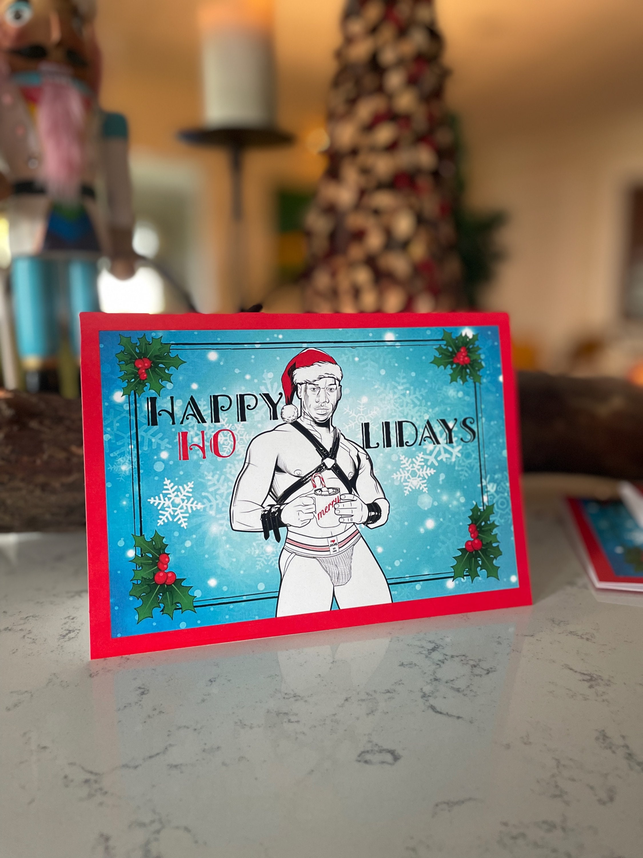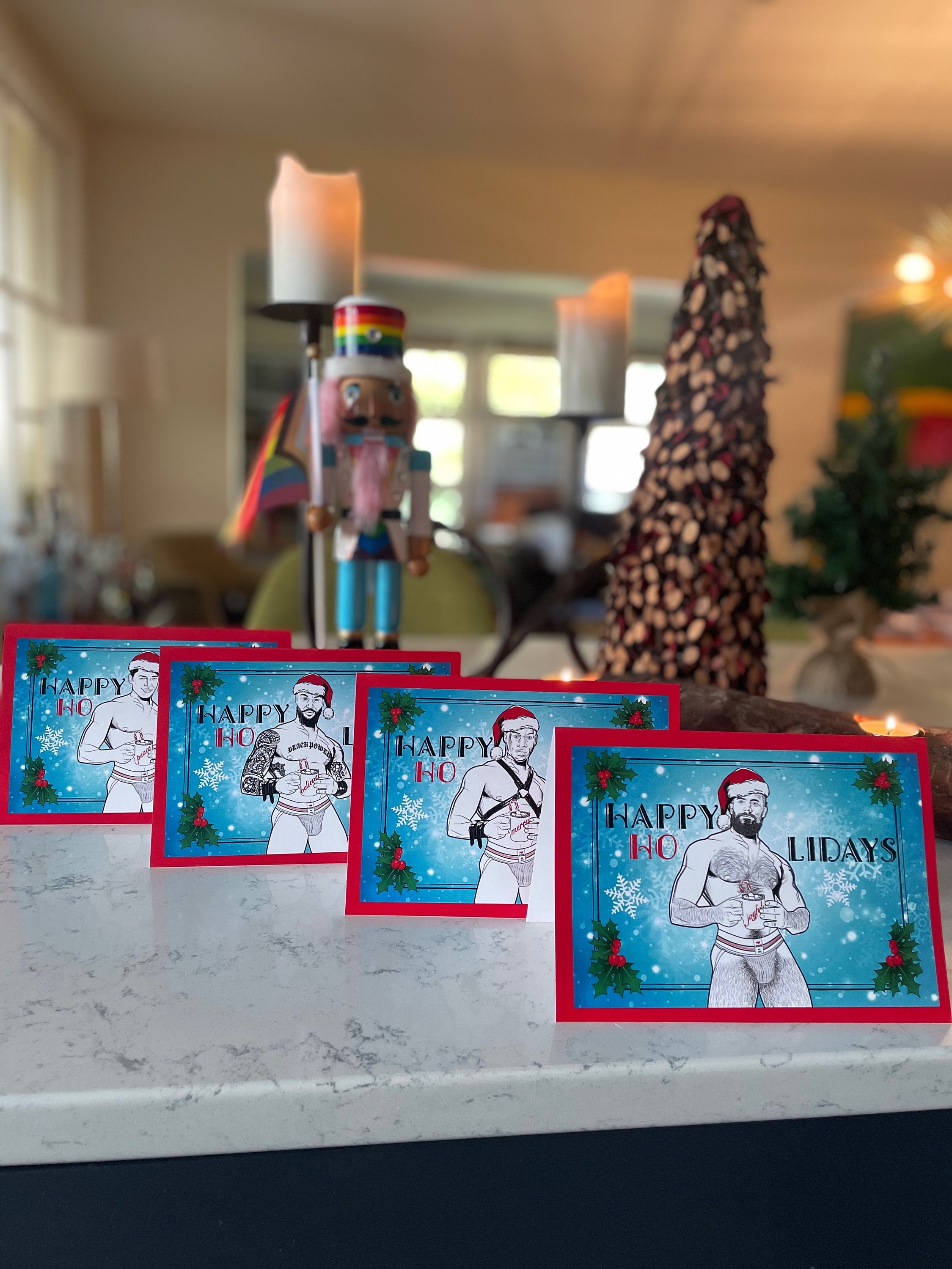 Our holiday cards are perfect for everyone on your list this season. These matte-finished cards use heavyweight stock paper and come with a blank interior. Envelopes are included with each card and a few extras just in case you need them. Blank inside. With your set of 8 XXXMAS Cards, you receive 2 of each hunk.