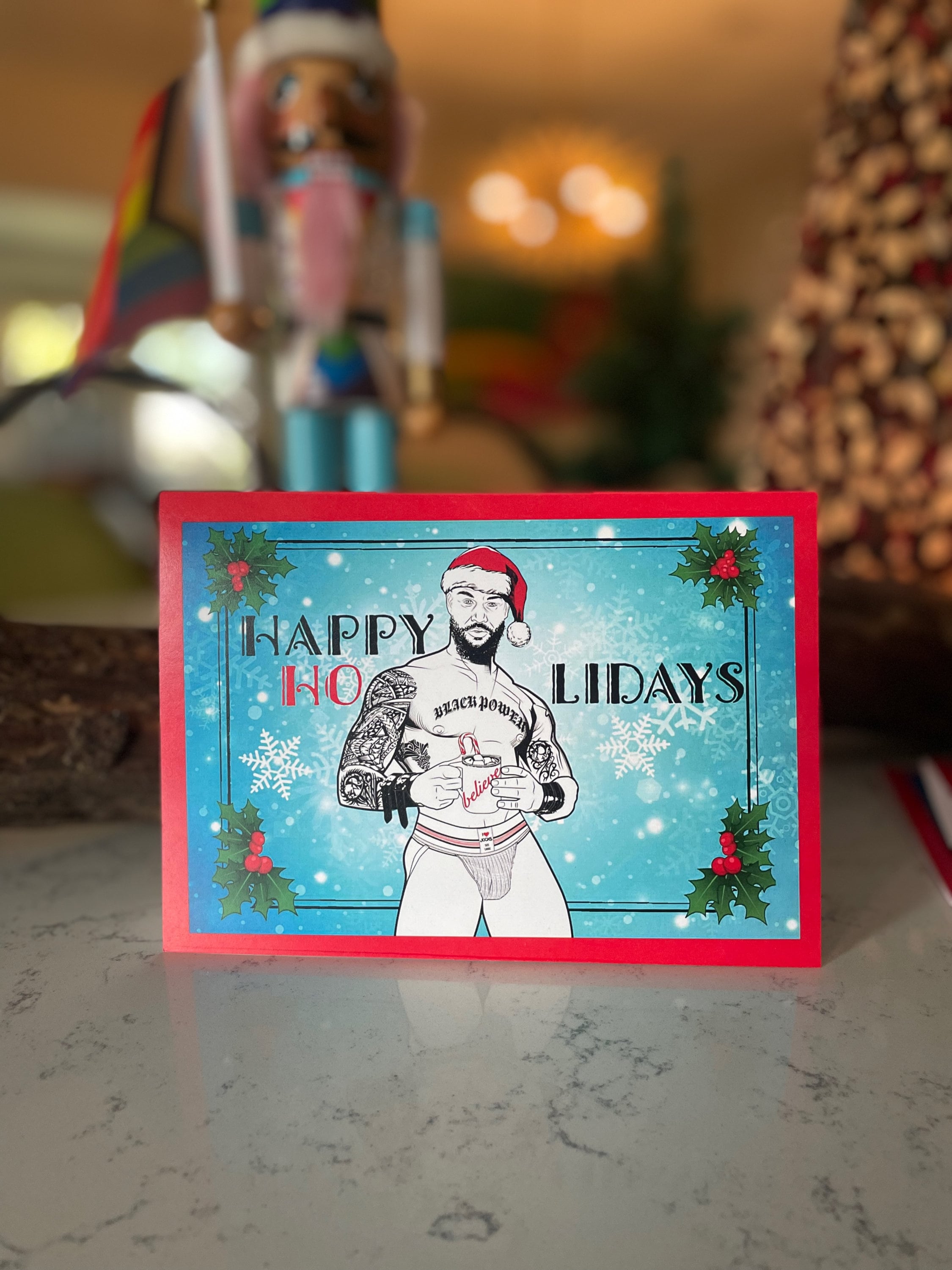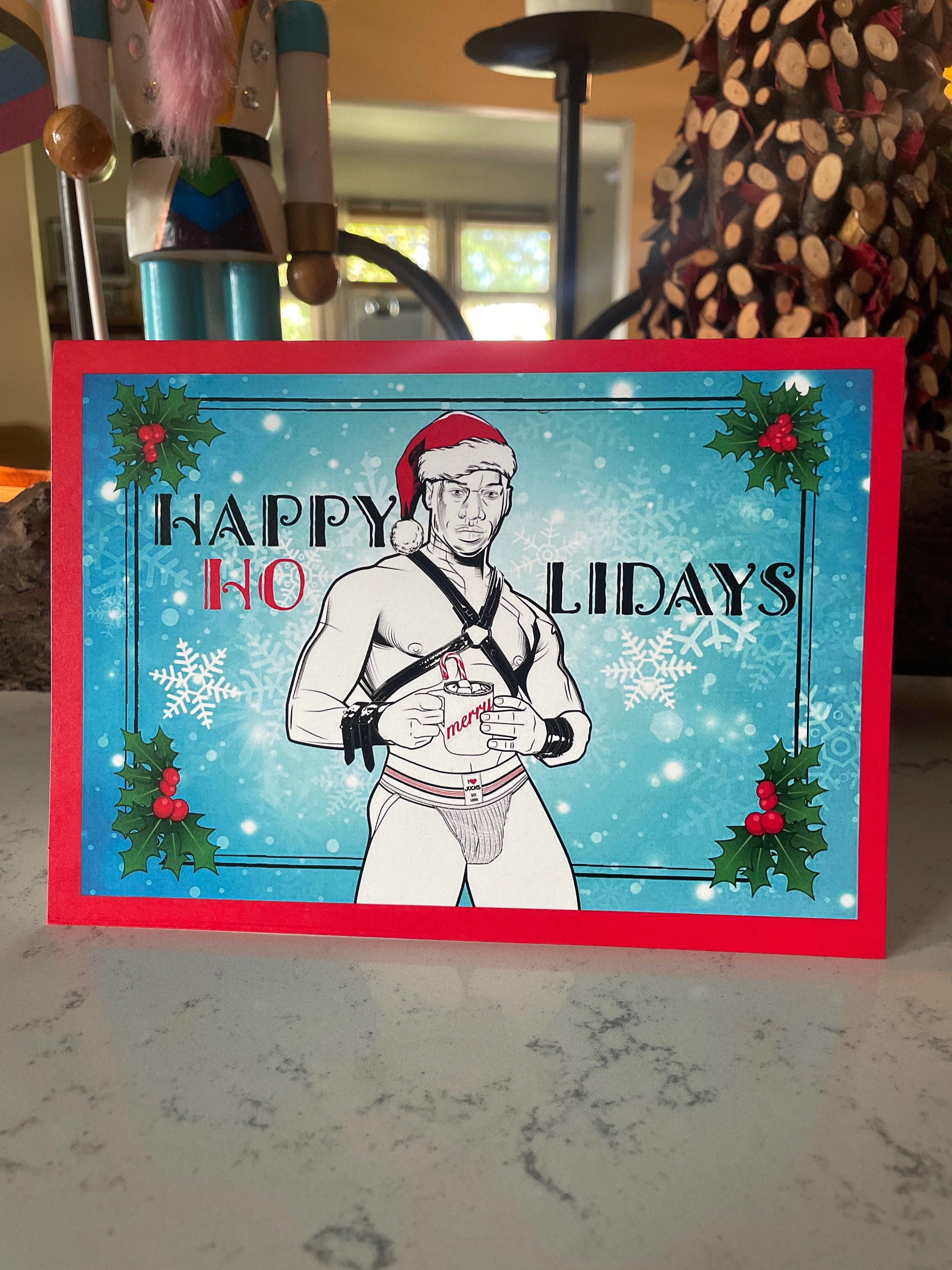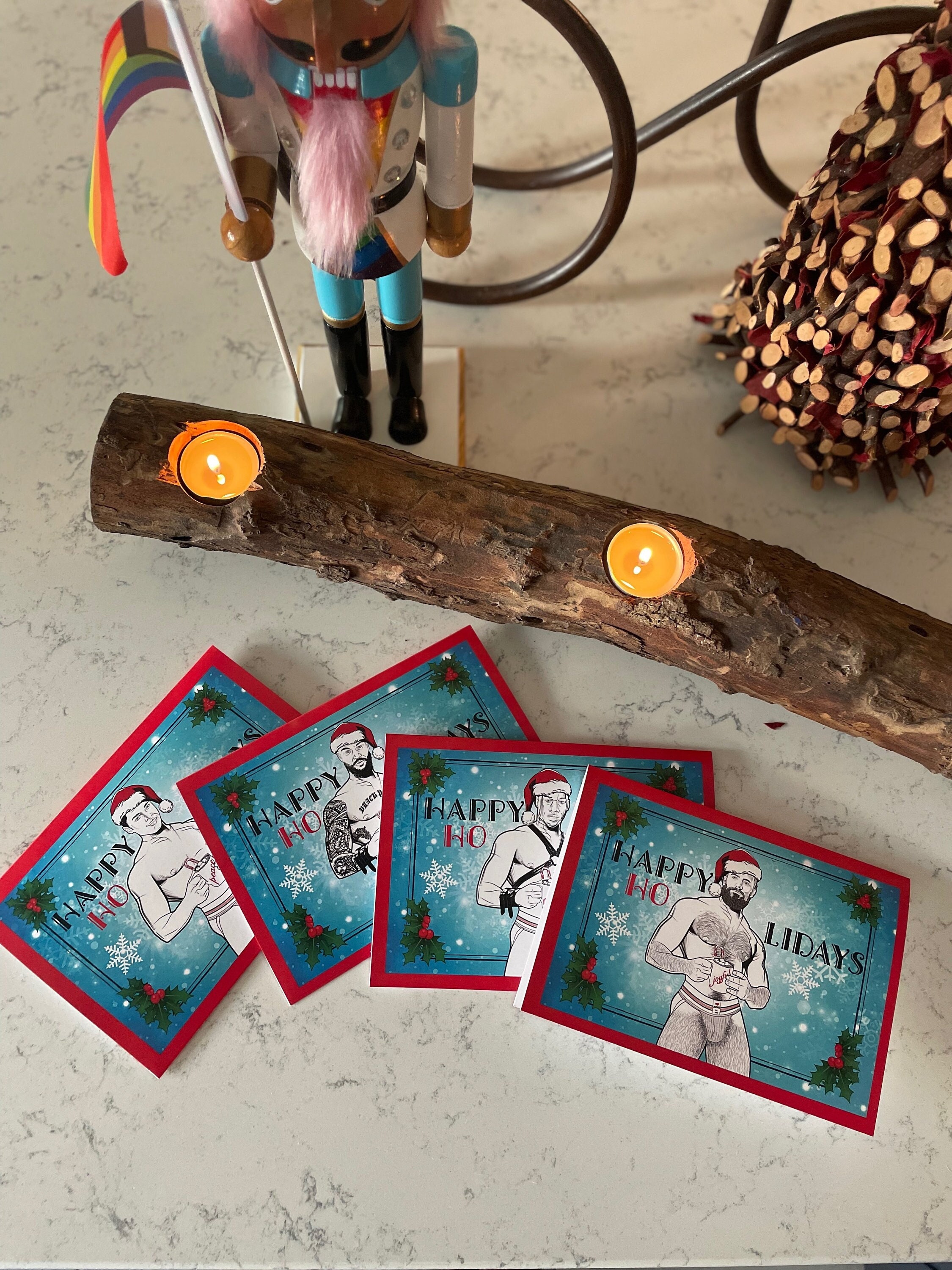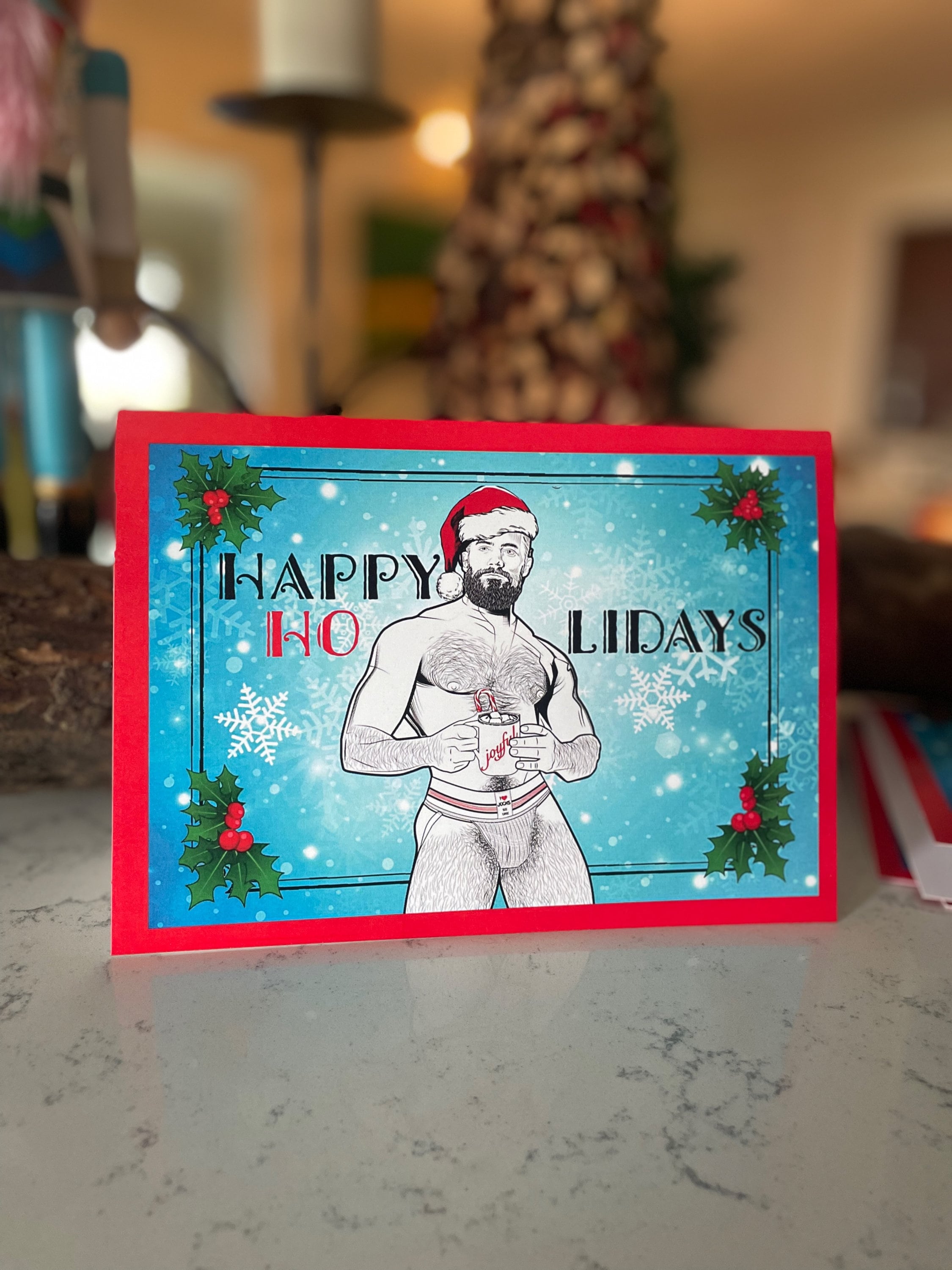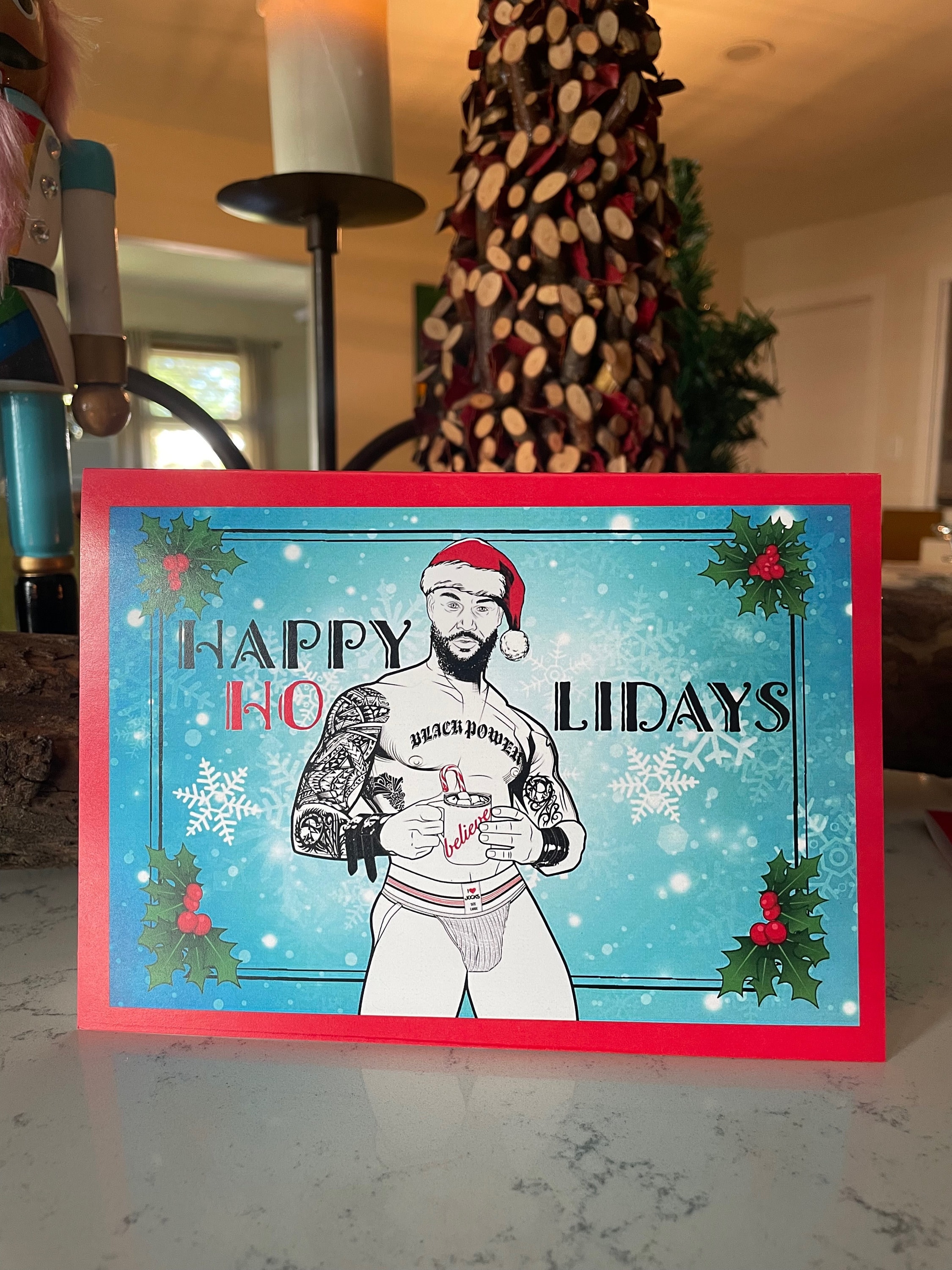 Our holiday cards are perfect for everyone on your list this season. These matte-finished cards use heavyweight stock paper and come with a blank interior. Envelopes are included with each card and a few extras just in case you need them. Blank inside. With your set of 8 XXXMAS Cards, you receive 2 of each hunk.