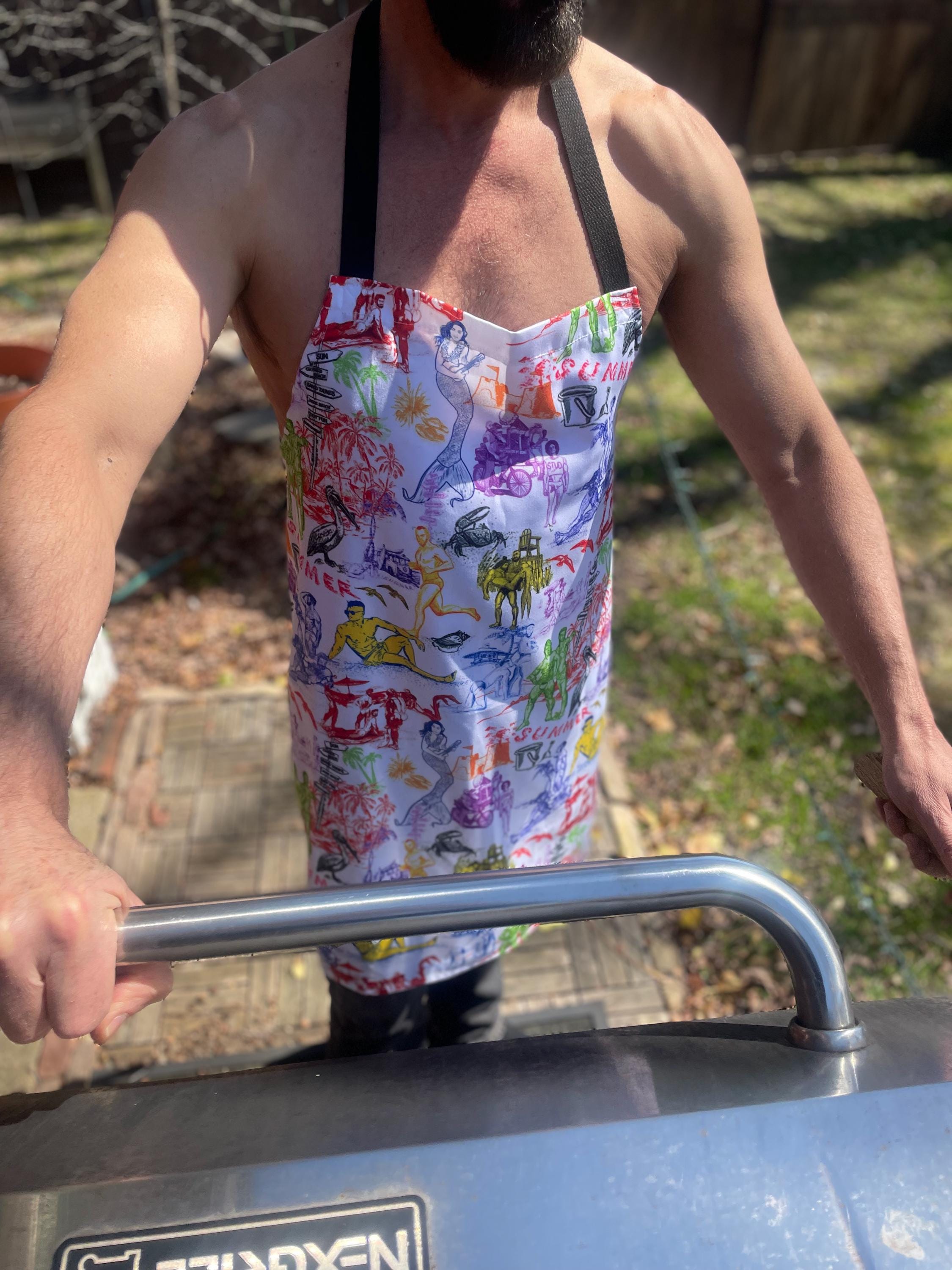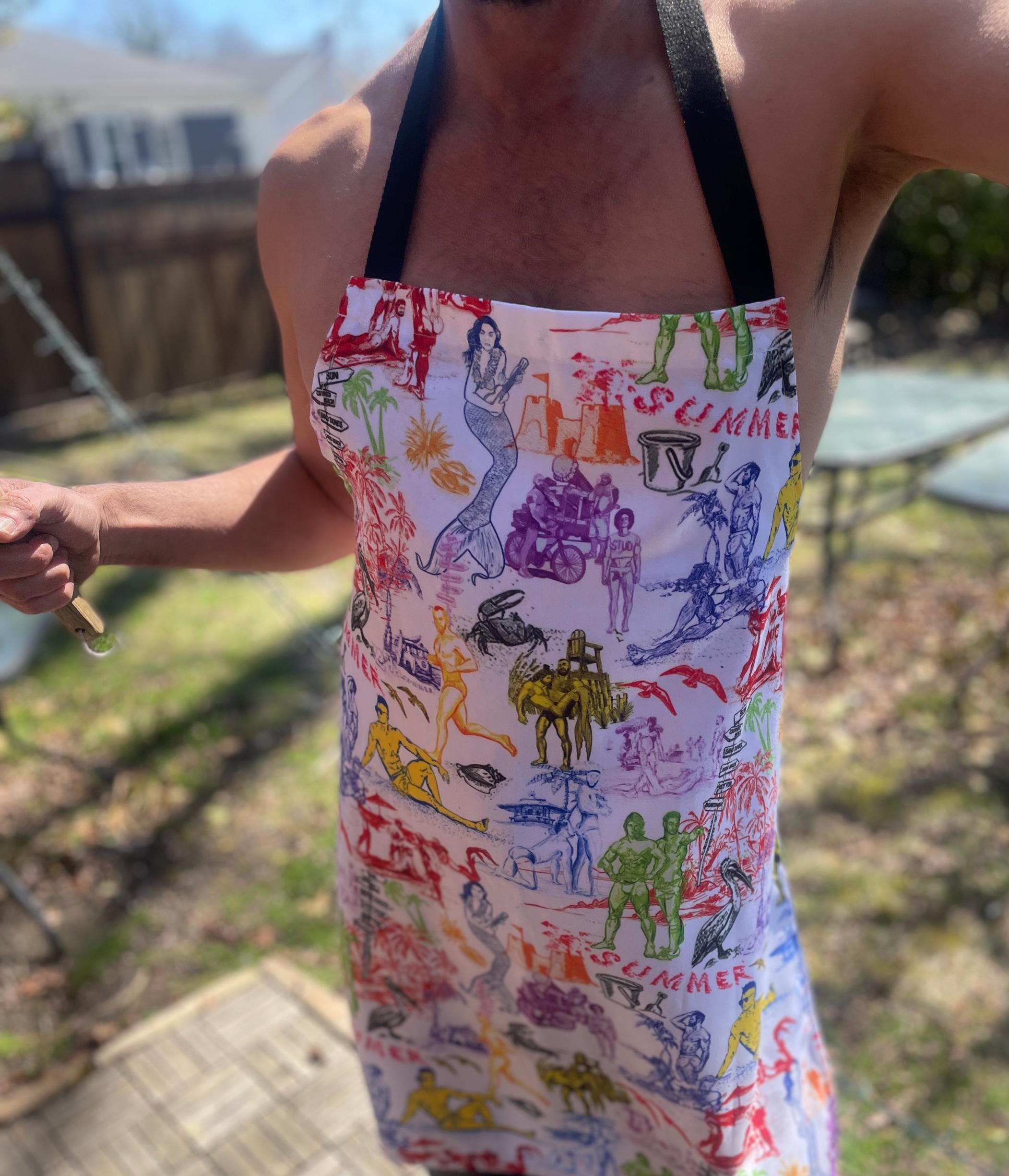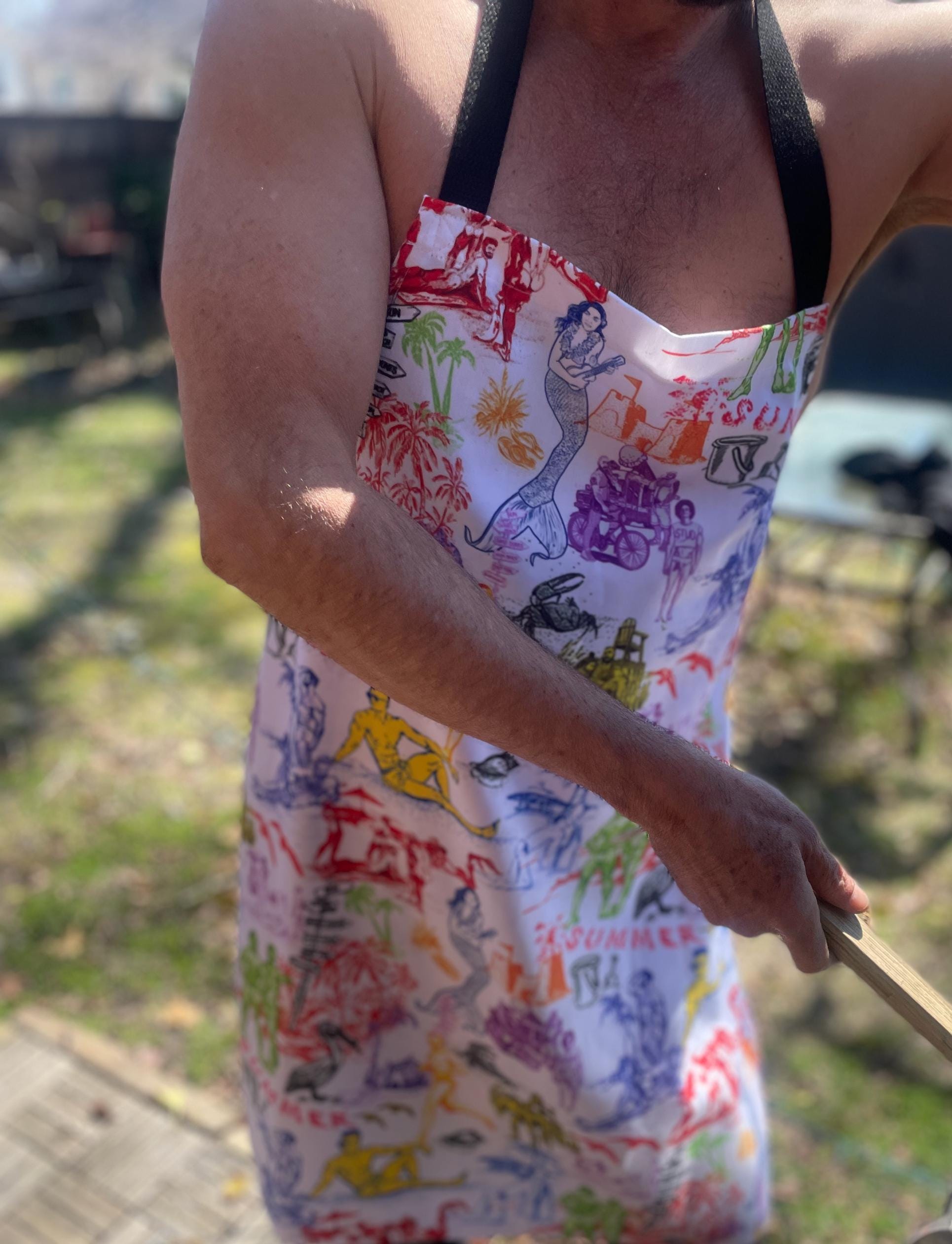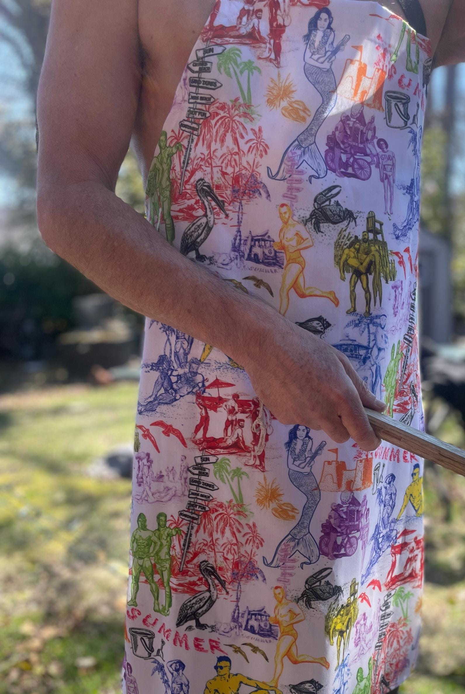 If you want to make a big splash at your next dinner party or BBQ with the boys, this is the perfect item to get your guests talking. This beach print is sexy, sophisticated and a little naughty. You'll always look your hottest in the kitchen, at the grill or anywhere you where it.