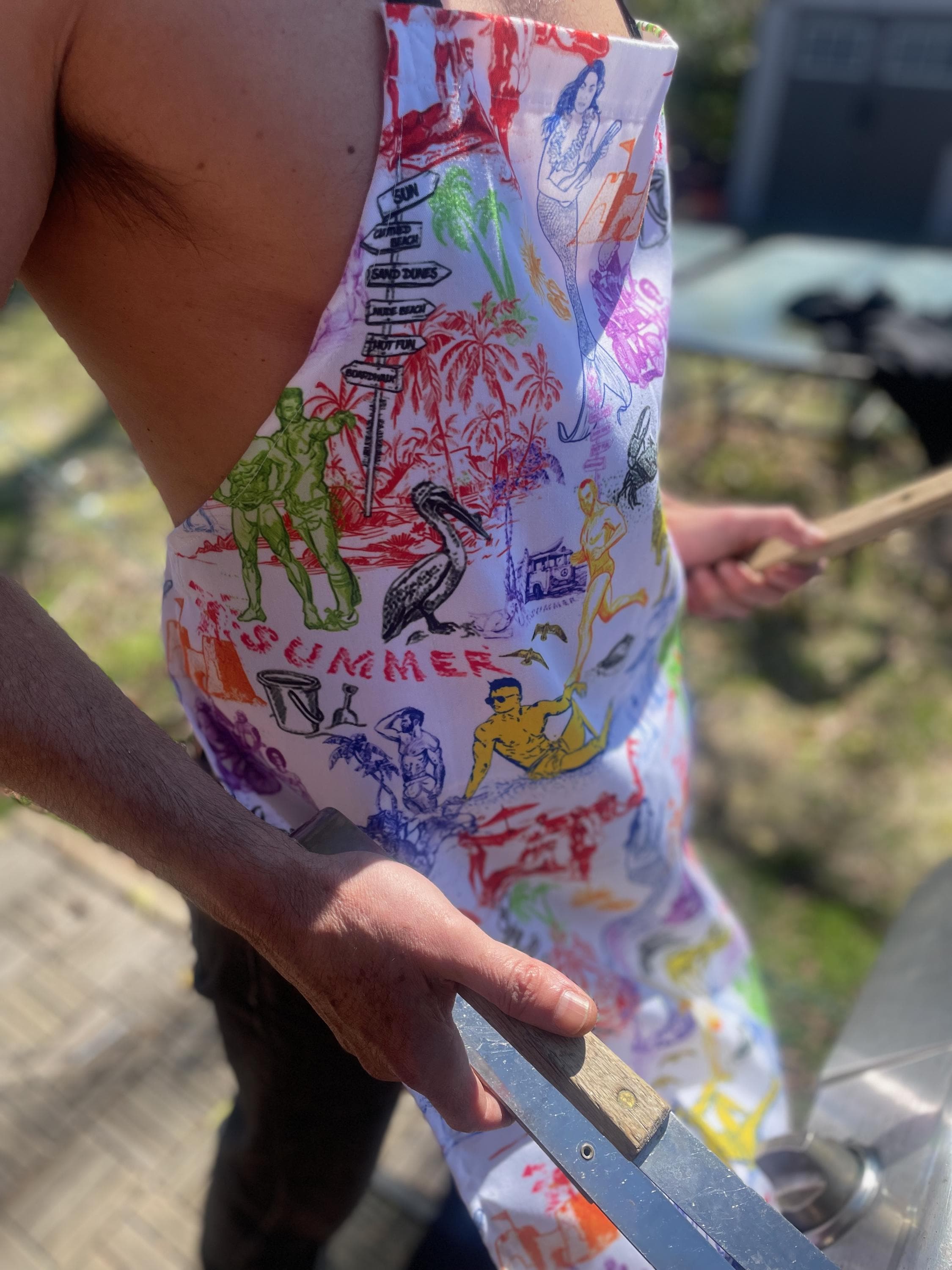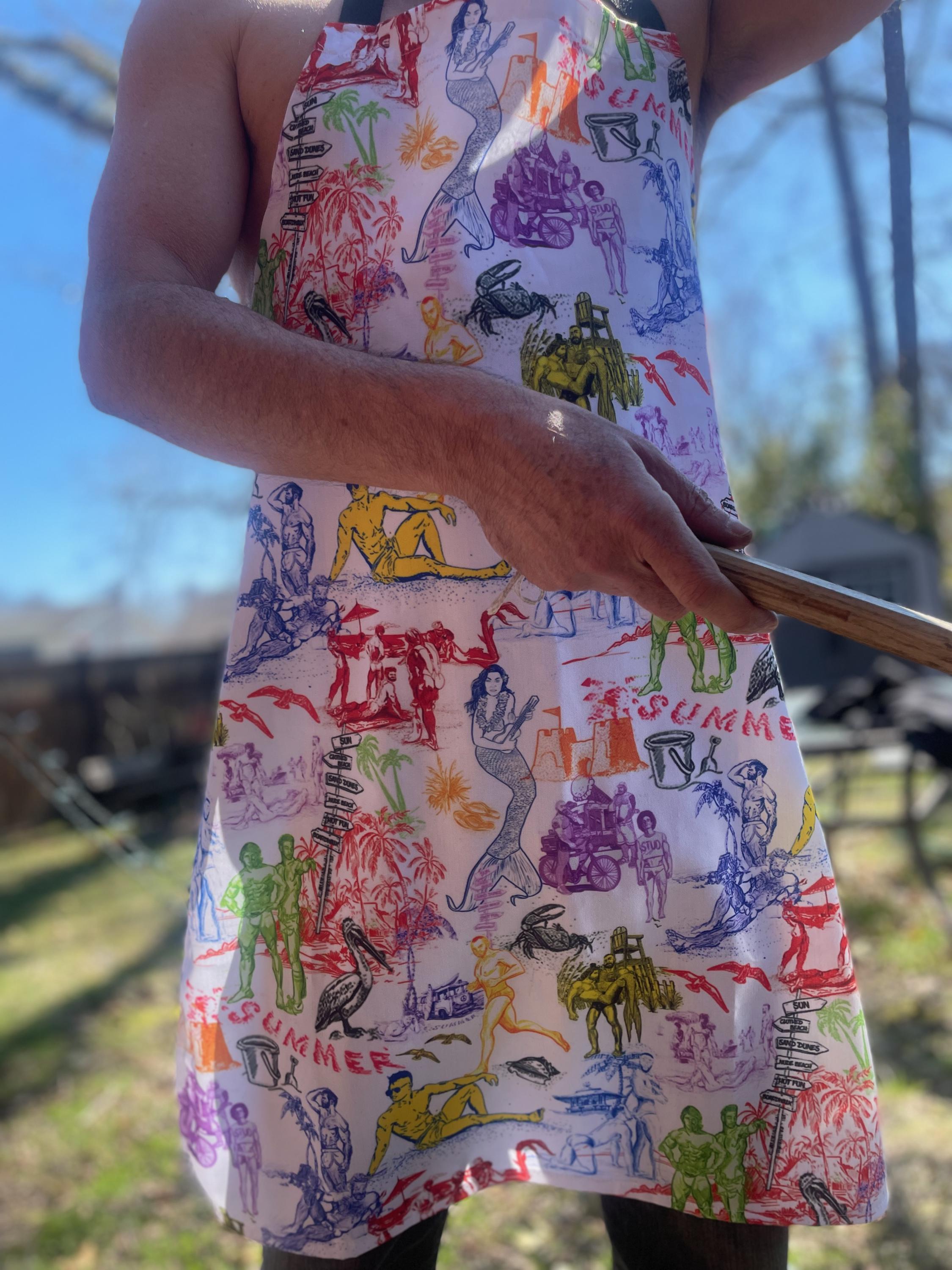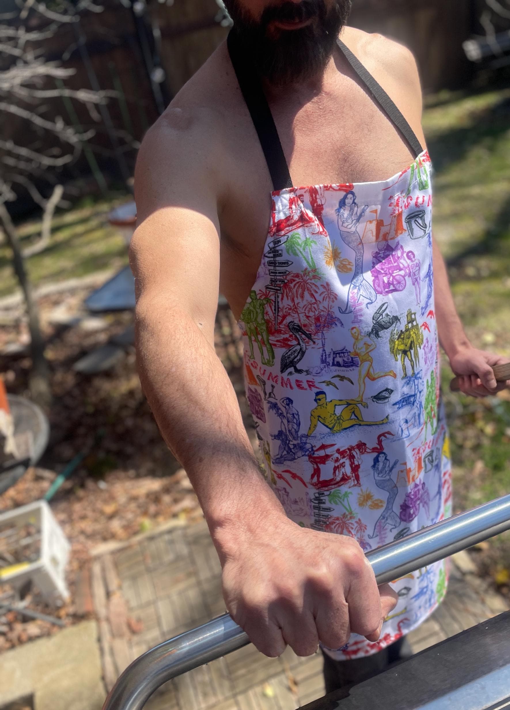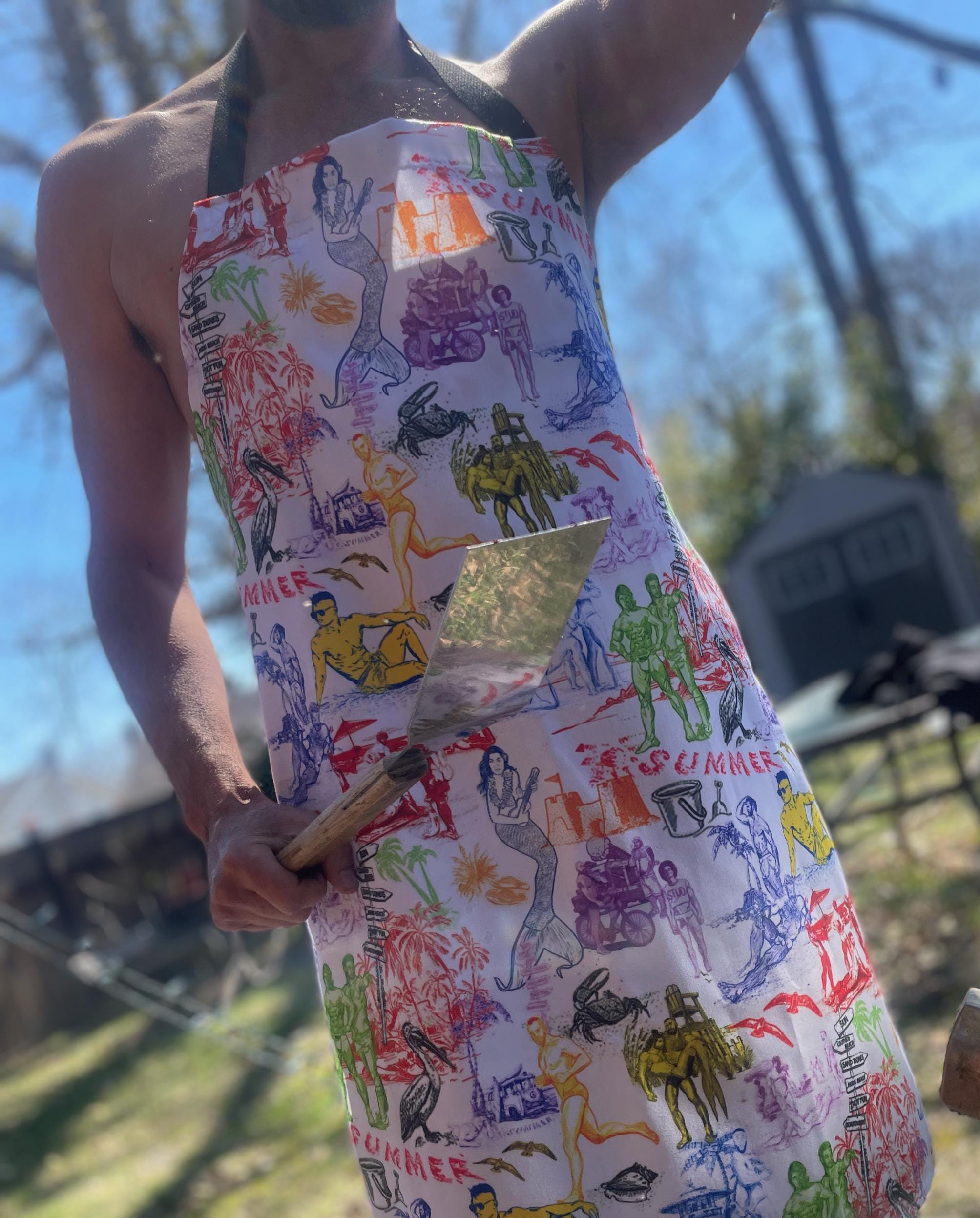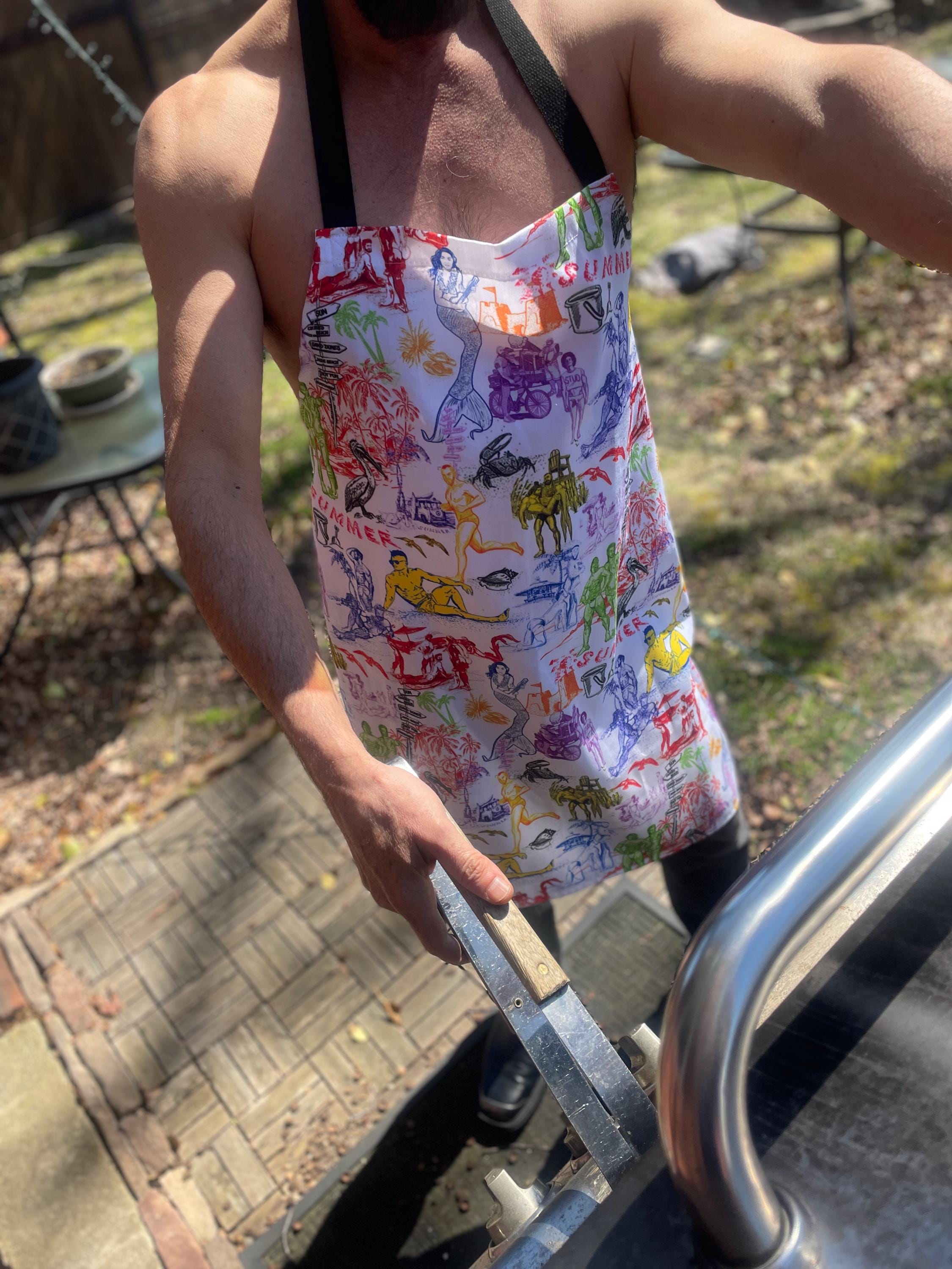 If you want to make a big splash at your next dinner party or BBQ with the boys, this is the perfect item to get your guests talking. This beach print is sexy, sophisticated and a little naughty. You'll always look your hottest in the kitchen, at the grill or anywhere you where it.