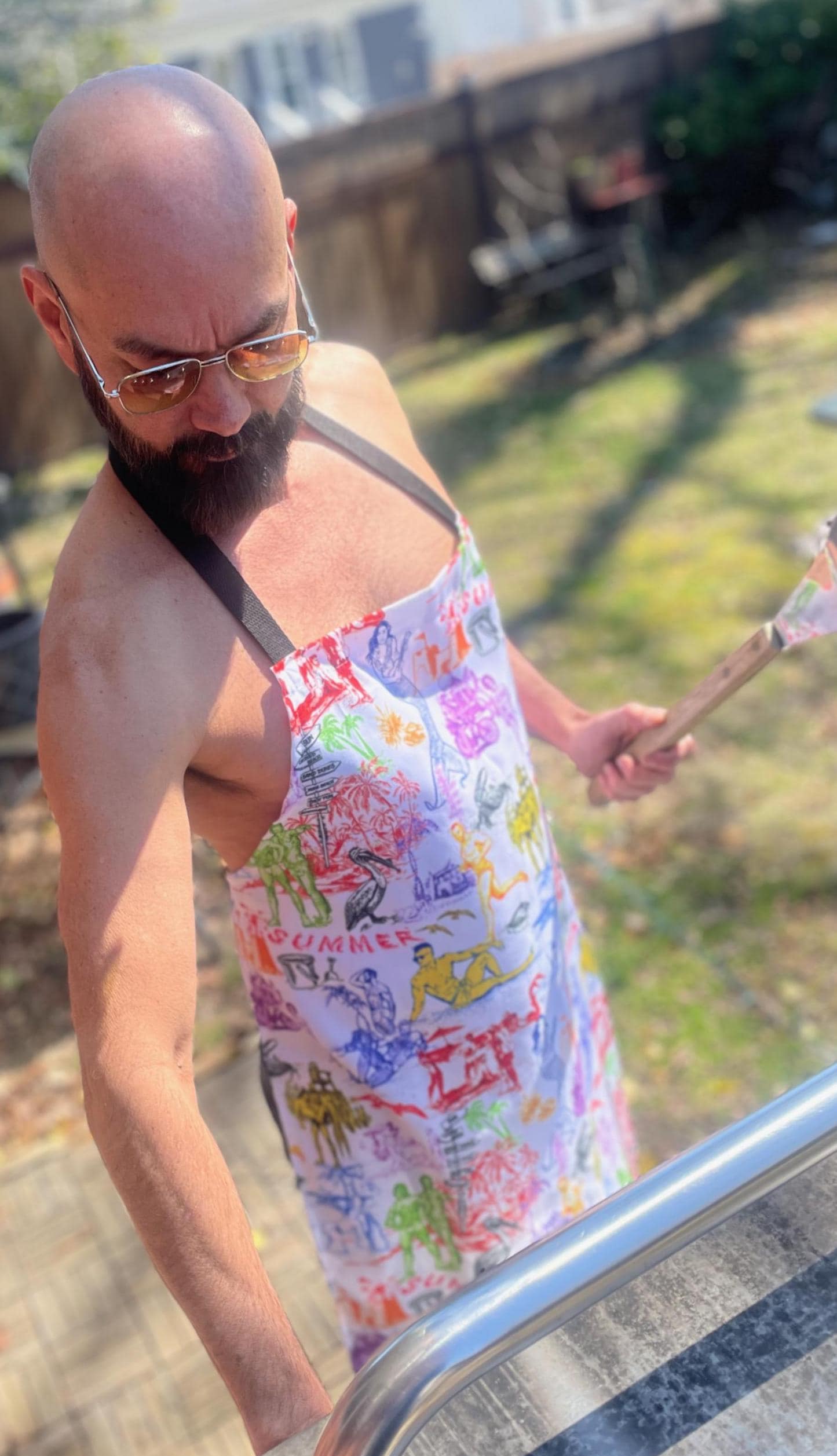 Our apron is made of 100% polyester and printed with an all over sublimated design. It also includes a durable neck band and extra-long black ties that wrap around to tie in front.