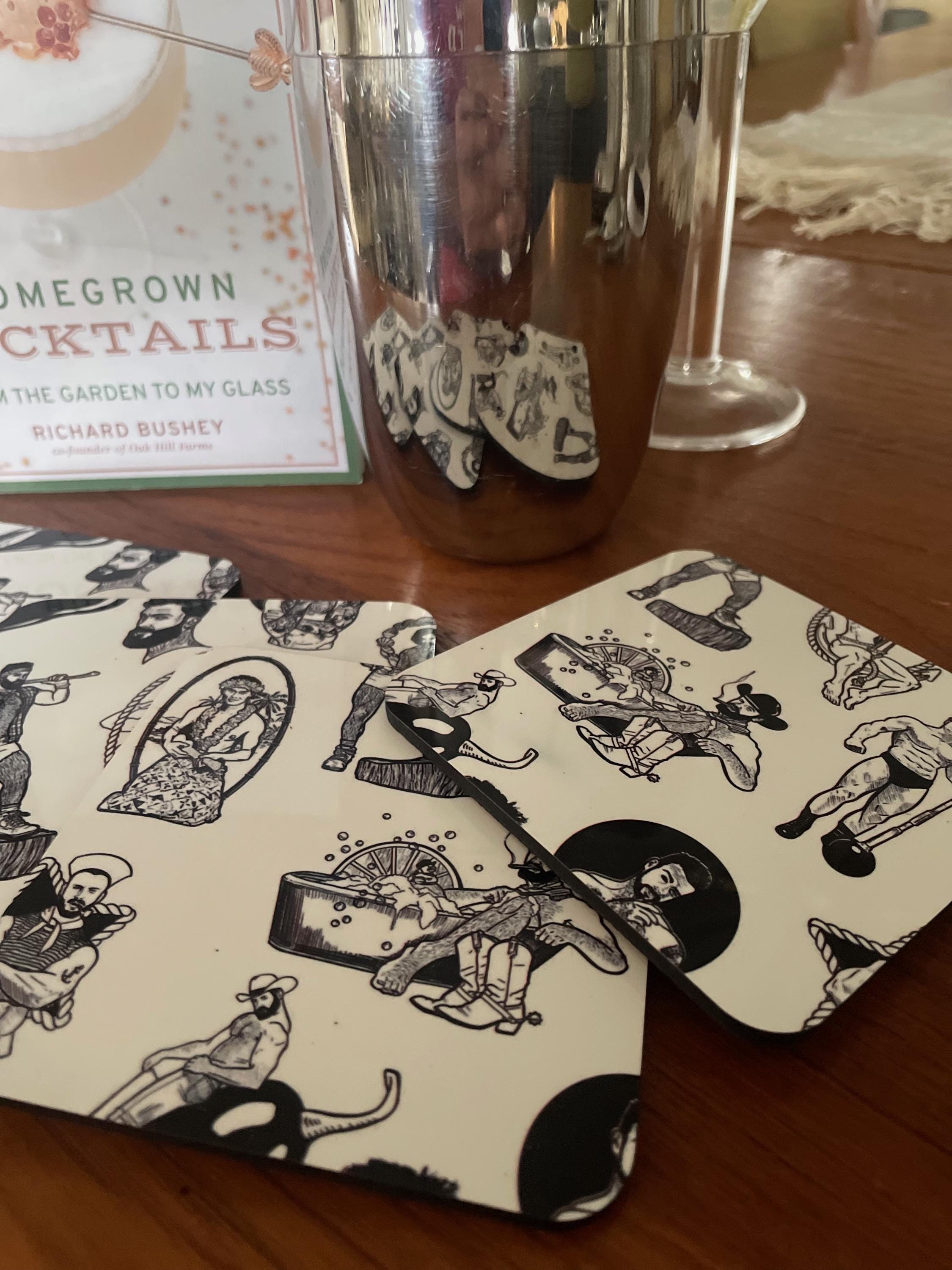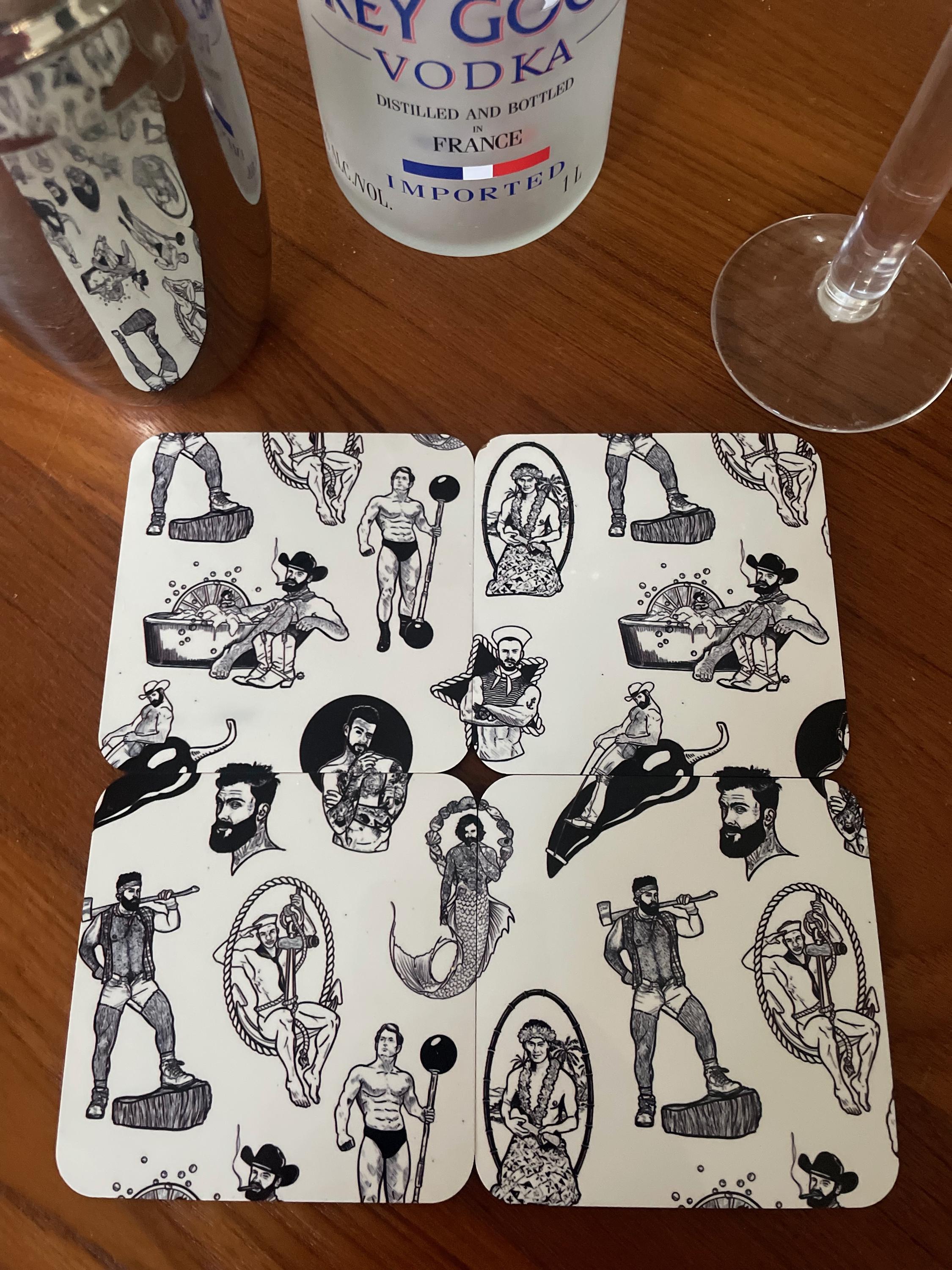 Our PUZZLE COASTERS are the perfect addition to your home. Vivid, eye catching and functional. Sold in a set of 4. They keep your surfaces dry, ring free, and fabulous. They are made of a lightweight masonite face with a glossy finish. Cork backing does not scratch surfaces. They also make a wonderful birthday gift, housewarming gift, even a simple thank you gift.